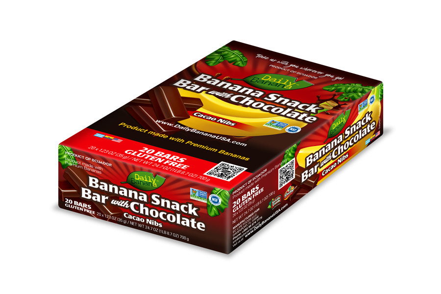 Banana Snack Bar with Chocolate and Cacao Nibs